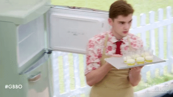 One of the most crucial parts of this challenge was the bakers ensuring each layer was chilled properly before adding the next, to guarantee the layers sit delicately on top of one another. This involved bakers carrying trays with six glasses to and from the freezers regularly. It created very tense moments when I was sure the glasses were going to slide right off the trays and onto the floor. Luckily, all of the bakers avoided disaster even if it was a close call for Henry.
