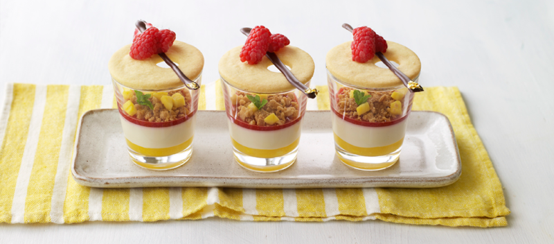 This week, the bakers had two and a half hours to create six identical verrines. All of the bakers looked perplexed, and for once I felt like an accomplished baker because I already knew! A verrine is a layered dessert served in a glass – I only know this because it was a recent trend of desserts served at Walt Disney World’s Hollywood Studios. Prue set the recipe this week and the verrines included, from bottom to top: a layer of mango compote, coconut pana cotta, raspberry jelly, coconut and lime streusel, with a sable biscuit and additional decoration perched on top of the glass.