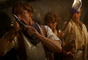 Just to clarify, this isn’t your grandmother’s 1930’s Mummy, nor is it Tom Cruise’s dreaded 2017 reimagining. No, this is Universal’s 1999 The Mummy with American adventurer Rick O’Connell (Brendan Fraser), half-Egyptian badass librarian and hopeful Egyptologist Evelyn “Evy” Carnahan (Rachel Weisz), and her bumbling-but-adored older brother Jonathan Carnahan (John Hannah).