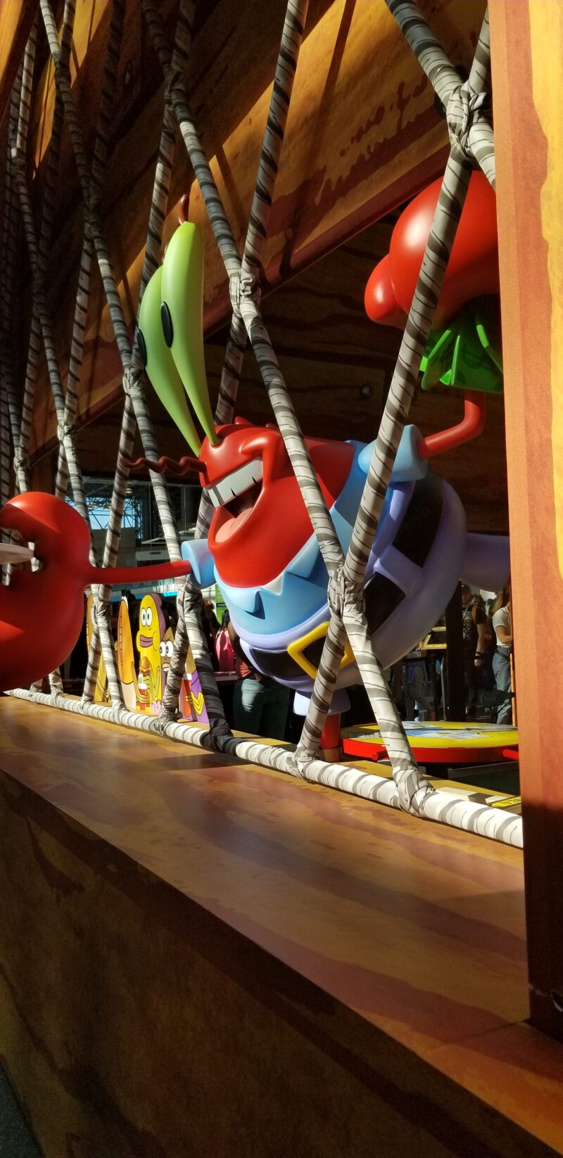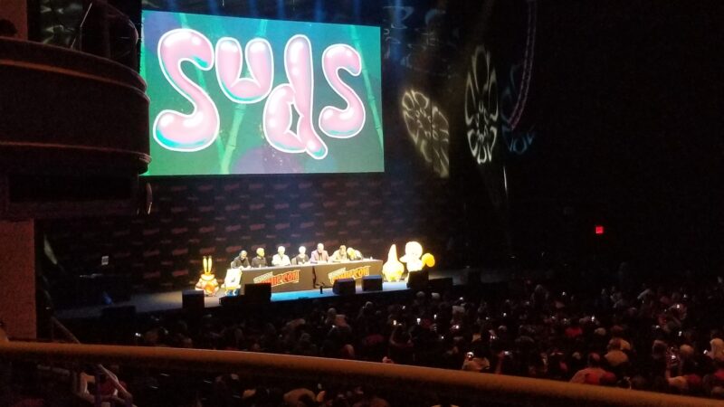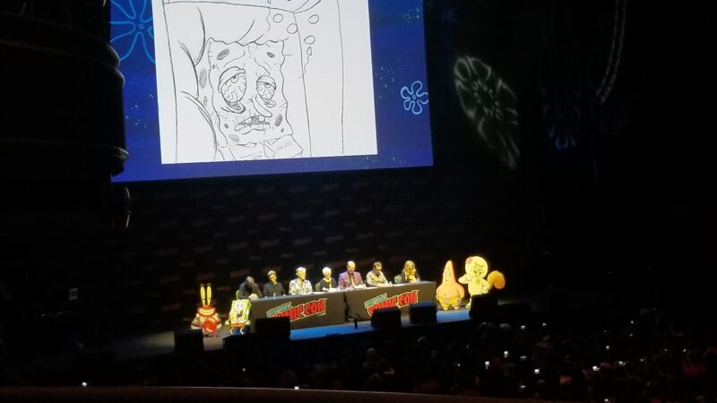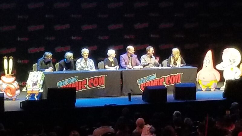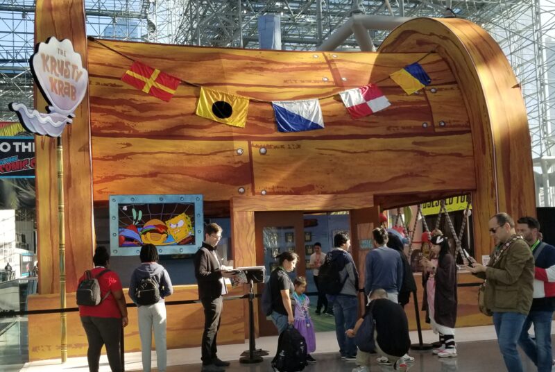 One of the highlights was all of the SpongeBob SquarePants activities throughout the convention. On day two of the con, we attended the SpongeBob Appreciation Day Panel! It was hosted by SYFY WIRE’s Senior Producer Tara Bennett, at the Hammerstein Ballroom. She was joined by Vincent Waller (Co-Executive Producer), Marc Ceccarelli (Co-Executive Producer), Clancy Brown (Voice of Mr. Krabs), Carolyn Lawrence (Voice of Sandy Cheeks), Bill Fagerbakke (Voice of Patrick Star), and of course, the voice of SpongeBob himself, Tom Kenny. The panel consisted of a trivia game to celebrate the show’s 20 years, a Q&A, and even a live reading of the fan-favorite episode “Suds.” Back at the Javits Center, there was a SpongeBob SquarePants activation, with a life-size version of the most popular undersea dining establishment of Bikini Bottom, The Krusty Krab! Inside, fans were able to compete head-to-head in a race against the clock to complete Krabby Patty orders. While waiting to play, you were able to sit down on the famous barrel chairs at the yellow and red ship steering wheel table. There was also Nickelodeon swag and even costumed-character SpongeBob and Patrick appearances!