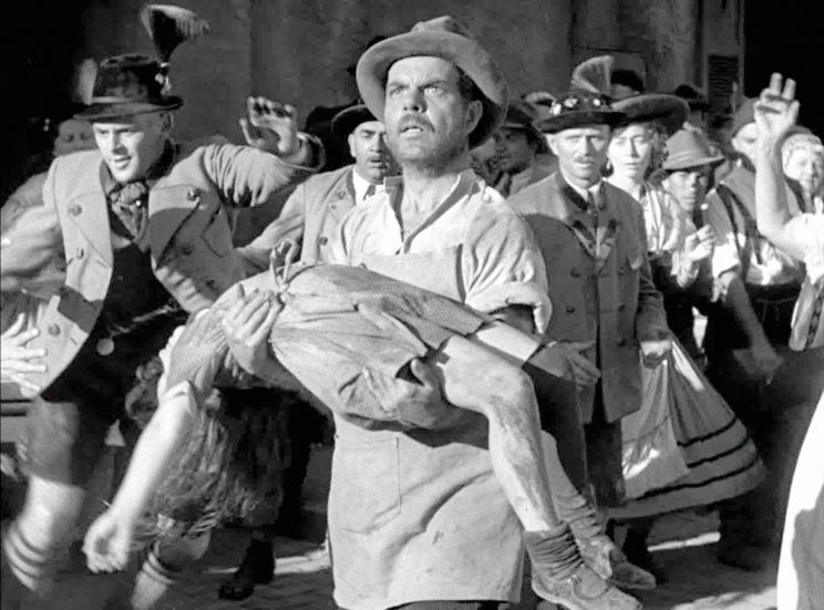 Another moment from Frankenstein that I loved was the scene after the Monster has his tragic encounter with little Maria. The entire village is celebrating the wedding of Dr. Henry Frankenstein and his beloved Elizabeth, but walking down the road in a catatonic state with his little girl’s lifeless body is Maria’s father. It was both disturbing and heartbreaking.