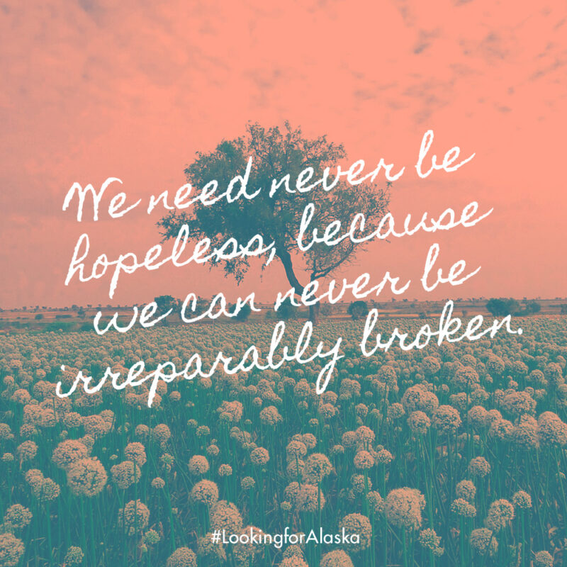 “But the not-knowing would not keep me from caring, and I would always love Alaska Young, my crooked neighbor, with all my crooked heart.”
