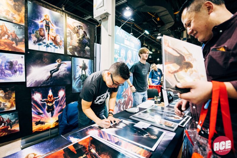 What we found in the artist alley was an array of different artists working with various mediums, displaying some of the most beloved characters, franchises, and original work. If you were looking to buy art prints, pins, accessories, or other small trinkets, artist alley was the place to be. And it didn’t stop at fan artists and original artists either. Fans of the Marvel universe were in for two very special treats as far as art was concerned.