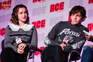 The next panel of the convention was with two of the stars of the Netflix show Chilling Adventures of Sabrina: Kiernan Shipka and Ross Lynch, who play Sabrina Spellman and Harvey Kinkle, respectively. First, they both seemed truly excited and gracious to be at the convention and to see their fans. The pair are filming season three of Sabrina in Vancouver in a sort of a bubble, so getting to interact with fans was very exciting for them. One of the first questions asked was what their reaction was to the darker twist the show took after the first few episodes. Kiernan says she read the graphic novel beforehand, so she was somewhat prepared for darker things. When the show started delving into satanism and cannibalism, she worried about what her Catholic grandmother would think. Apart from that, she thinks that the darker the story gets, the more the audience is invested. When asked if they were horror fans before doing this show, they both said they were, stating their favorite horror films as The Shining and Texas Chainsaw Massacre.