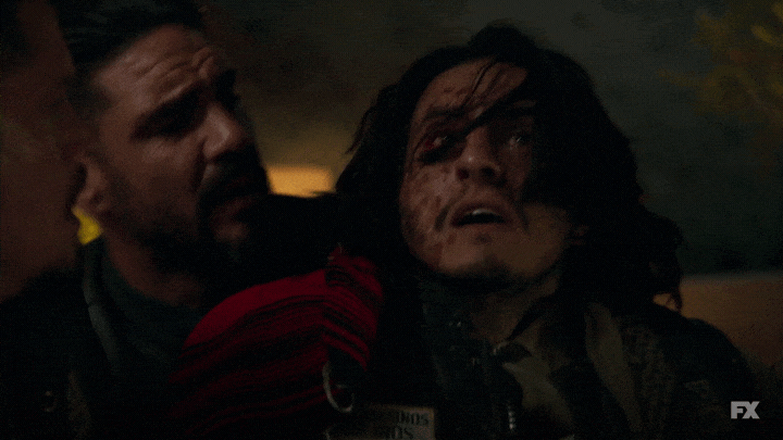 After trying to call Emily again, EZ walks in right as the black van that appeared earlier pulls up, throwing a Molotov cocktail on some of the bikes. The Mayans are suddenly surrounded by the VM, who open fire seeking revenge. When the VM drive off, we see that Riz has been shot a few times in the chest, and Coco, having got set on fire, says he can’t see.