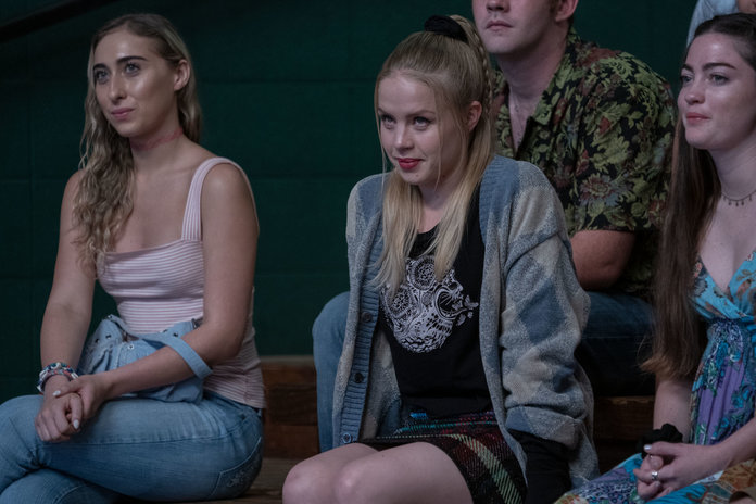 A montage of prank planning begins. Miles even enlists his prankster father to help legitimize the plan with The Eagle. As Speaker Day begins, it becomes clear what has occurred: the clerk from the liquor store is pretending to be their class speaker. The clerk then starts to talk about how men objectify women’s bodies, reading from a speech Alaska could have written about subverting the patriarchal paradigm. Lara plays along, standing up and telling him to take off his clothes.