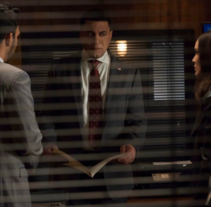 Cooper visits Hutton’s grave and puts his medal on the stone. Red and Dembe once again approach, and Cooper tells them that he was a coward and wasn’t willing to stand with Hutton because someone on the higher chain of command made an order. He tells Red he gave Panabaker the flash drive and that the flash drive and the medal represent who he was. Now, he is someone who takes responsibility for his actions. Red asks if he told Panabaker about his true identity, and he says that he told her he is Raymond Reddington.