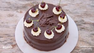 Over the weeks, Steph has tended to stick to classic flavors in her signature bakes, and this week was no exception. She went for a classic black forest chocolate cake, with cherry jam and Kirsch Chantilly cream. Steph seemed quite calm and collected, and in typical Steph fashion had wonderful time management skills and finished ahead of the time limit. The judges loved her flavors, which were well balanced, and praised the neatness and elegance of her cake. However, they thought it was slightly over-baked, which had resulted in a slightly crumbly texture but had not affected the flavor.