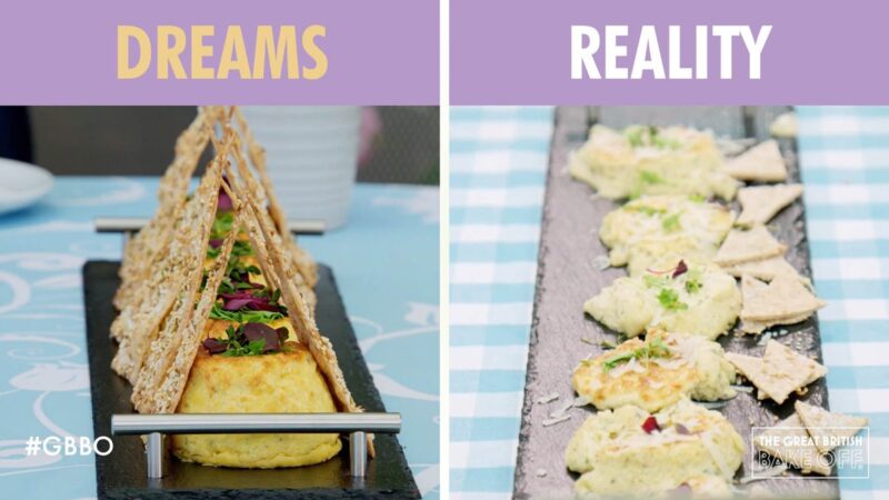 The technical challenge this week was a disaster of a challenge and is by far the most difficult I have ever watched. Paul set the recipe for the bakers to make six, twice baked Stilton soufflés with thin Lavash crackers in one hour and 10 minutes. Soufflés are notoriously difficult to make, as they do not include a raising agent and so rely entirely on the whipping of egg whites. If you don’t beat the egg whites enough or over-beat them, then the soufflés will not carry the air. I truly thought this challenge was much too challenging to give to amateur bakers and was proven right by the disasters that followed.