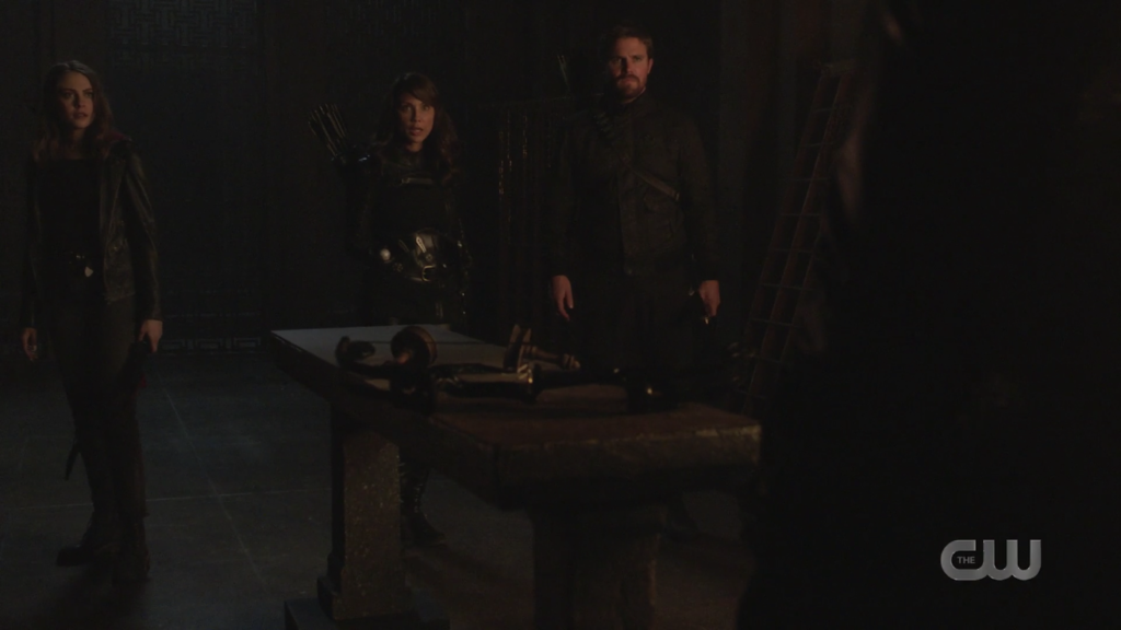 Oliver and Thea get outside the crypt and realize they’re not alone. Athena and the assassins show up, and they’ve captured Talia. Athena tells them the route to Al-Fatih’s crypt will be dangerous, and she has them show them the way.