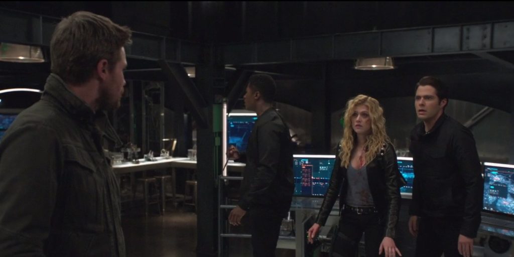 In the future, the team breaks into the Deathstrokes’ headquarters. William says if he can tap into the old galaxy one cameras, they should be able to see everything, including JJ and his gang. They hear someone coming and quickly hide. William figures out there’s an office close by he can use. Once they get there, he tells them the system is going to need a minute to reboot before he can access it. Zoe tells Mia she hopes she’s doing all of this for the right reasons, saying they can’t let fear dictate their strategy. Mia tells her she’s not afraid of JJ or his goons, and Zoe says she is afraid of losing her brother. Connor tells them they should get into position, and Mia stays back with William until he’s done.