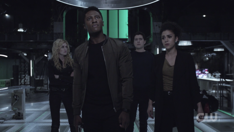 In the future, the team breaks into the Deathstrokes’ headquarters. William says if he can tap into the old galaxy one cameras, they should be able to see everything, including JJ and his gang. They hear someone coming and quickly hide. William figures out there’s an office close by he can use. Once they get there, he tells them the system is going to need a minute to reboot before he can access it. Zoe tells Mia she hopes she’s doing all of this for the right reasons, saying they can’t let fear dictate their strategy. Mia tells her she’s not afraid of JJ or his goons, and Zoe says she is afraid of losing her brother. Connor tells them they should get into position, and Mia stays back with William until he’s done.