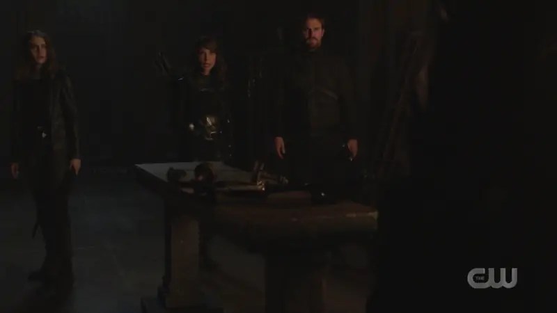 Talia leads Oliver and Thea through the catacombs and says that assuming the Karan Shah hasn’t been plundered; they’re likely to find what they’re looking for in “The Chronicles of Al-Fatih,” he was the first Ra’s Al Guhl. Talia says her father kept a room full of prized possessions, including information on Al-Faith. Opening a secret passageway, they find the room, which has already been looted. However, they managed to find “The Chronicles of Al-Fatih.” Talia tells them the thieves don’t consider it to be of value, which is why it was left behind. After finding out what it means — your old self must die so your new one can be reborn to join The League — Oliver says they need to burn the scroll, revealing an artifact. Talia believes it leads to Al-Fatih’s tomb. Athena shows up, telling Talia to relinquish the artifact or perish. Athena orders the assassins to attack, and they fight one another. The three use the artifact to escape.