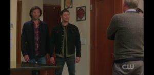 Dean gets intel from the school mascot and learns that both victims were cheerleaders. They figure their monster is whichever cheerleader is next up for the part of team captain. They confront the girl as she’s in an empty auditorium, practicing her speech for Susie’s memorial service. It’s only when they realize that she has braces that they know there’s no way she could be the vampire.