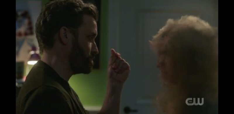 When Becky asks why he is actually there, Chuck talks briefly about his falling out with the Winchesters. He states that he’s low on resources and that his own sister rejected him because “she sucks,” and he went to Becky in hopes that she could make him feel big again. He obviously needs his ego stroked after all that rejection, so who better to do that for him than his #1 fan? But, Becky isn’t really about that life anymore. She has a family, a life, and she doesn’t need Chuck.