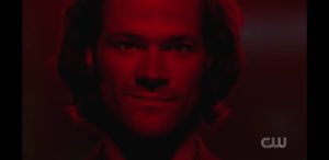 Dean continues on, stopping a demon and asking, “where is he?” The demon doesn’t reply, and Dean takes him out and continues searching. He finally finds who he is looking for, and we see Sam. But this Sam is on demon blood and in his conversation with Dean, where Dean is pleading with him to stop, he states that he has done something to Bobby and Jody. “They tried to stop me, but I will not be stopped.” He kills another hunter sneaking up behind him, and then his eyes go black before he kills Dean. Much to my relief, the scene cuts to Sam waking up in his bed in a panic. It was only a dream, or at least I hope that’s all it was.