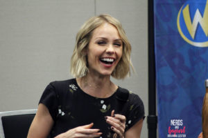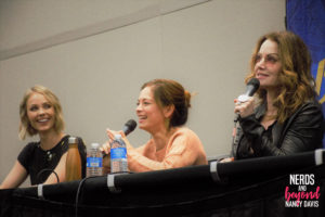 The second Smallville panel of the day, “The Women of Smallville,” consisted of Kristen Kreuk, Laura Vandervoort, and Erica Durance. They each spent time filming several of their scenes using green screen, both on the show and throughout their careers, so they each touched on what that’s like. Kreuk stated that working with a green screen really sharpens your skills as an actor because you have so little to work with; a lot of times the only thing in front of you is a tennis ball and you’re expected to be able to cry over it. They also touched on another major difficulty in green screen work: overdoing it. They each talked about trying to find a happy medium of sorts in their acting, so as not to over or under act a scene. On the subject, Durance said, “You could be acting like you’re terrified of something and end up completely overdoing it for what gets added in post. You can look at it later and go ‘oh, that’s not really that scary, it’s actually kind of cute.’”