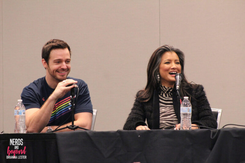 Stormoen discussed his role as Captain Garret Spears on The Outpost, which has just been renewed for season 3 and will begin filming in Serbia soon. “He’s a young captain of the guard in this fantasy world. He’s this very upstanding, paradigm of good in the first season and in the second season things take a darker turn,” said Stormoen. We’ll definitely be checking out The Outpost! Stormoen also talked about his time on Mythica, which was his very first project. He shared that he actually dreamt that he was replaced a week into shooting and confided in Mythica director Anne Black, who very bluntly told him not to worry, they had already shot too much footage to recast his role. The whole panel was filled with laughter from fans as Hu and Stormoen shared these fun on-set stories.