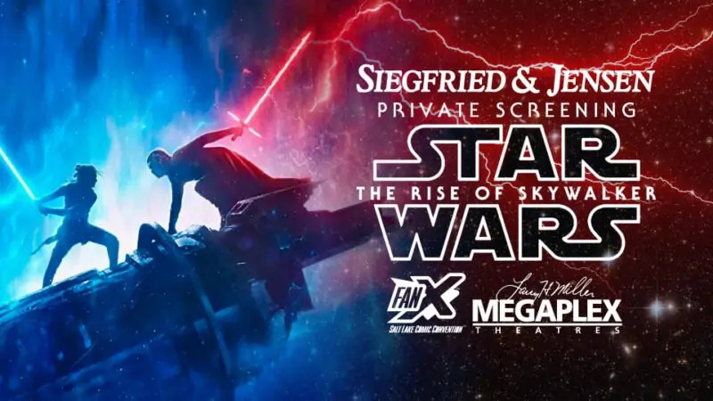 Join FanX Salt Lake Comic Convention and Seigfried and Jensen for a private screening of Star Wars: The Rise of Skywalker at the Megaplex Theatre at Jordan Commons in Sandy, Utah on Thursday, December 19.