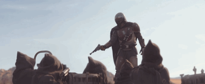 It’s been a long day at the office and you come home to find that a sandcrawler full of Jawas has looted your ship for all that’s it’s worth. What do you do? Cut your losses and call it a day? Well if you’re the Mandalorian, clearly the best option is to attack their giant vehicle with your bare hands, disintegrate a few of them, very gracefully get dumped off the transport, and waltz back over to their campsite the next day to sort of make peace (and maybe, possibly threaten them with a flamethrower). This man is clearly a diplomat in the works.