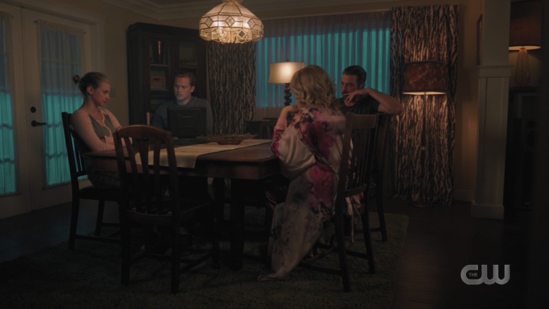 Jughead visits FP in the hospital, who had gotten shot while at Pop’s. Jughead tells him he found Grandpa; he’s living in Seaside in a converted bus. FP asks what he did that for, and Jughead says Mr. DuPont offered him the Baxter Brothers contract. He wanted to talk to Forsythe before he signed or not, and now that he has, Jughead says he was wrong. DuPont did steal the idea, but he did it legally. And for what it’s worth, Forsythe feels bad about the way he treated FP. He knows what he did to him and Grandma, and he knows that he was a bad father.