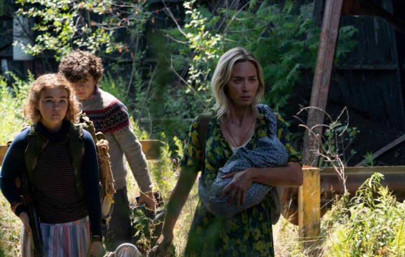 The sequel seems to pick up right after the events that unfolded in the first film, with Evelyn’s foot still bandaged up, as well as the fact she is carrying her newborn baby.