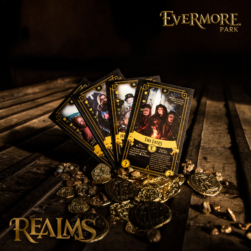 Realms is part of the real collectible adventure cards that guests can find at Evermore’s Kettle Café and Mercantile, which directly affect how a guest may engage with the story of the park as a player. Depending on which quests they decide to take up inside the park, players will be able to level up their status from Apprentice to Champion, and even join a guild to climb through the ranks.
