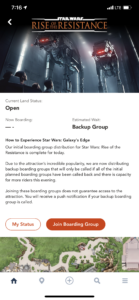 When you open the app, they make it easy by putting Rise of the Resistance access by Boarding Group on the front of the app. When you click to find out more you will be able to click “Join Boarding Group”, if it is open and boarding groups are available. If boarding groups are not available the button will be greyed out.