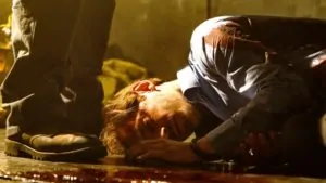 Malcolm again hallucinates, this time his father. He confronts him about trying to kill him on the camping trip, but unsurprisingly the hallucination would rather focus on Malcolm’s survival. He notes that the chain holding Malcolm’s hand is three inches wide and his hand is five inches wide. In order to get free and save his family, Malcolm is going to need to make his hand smaller. Taking a sledgehammer John left behind, Malcolm breaks his thumb to escape the shackles, echoing the scene from early in the season when Malcolm had to chop off a man’s hand to free him.