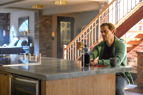 It seems Malcolm is also having trouble with bad dreams (what else is new?) as he is unable to clear his head by meditating. Trying to distract himself, he turns on the TV to see Ainsley covering a fancy society wedding for the news in a pivot from her usual dysfunctional serial killer beat. Jessica enters, happily talking about the fact that Malcolm has finally been persuaded to take a vacation. She has brought him a white suit to wear for the trip, and I would just like to personally thank every member of the costume department on Prodigal Son for the gift of this suit. Jessica thinks he looks great in it, while Malcolm is hesitant (listen to your mother, Malcolm). Jessica also emphasizes that it’s important for him to relax and recharge amidst all the attempted murder lately. He wants to stay home, but Jessica has even arranged for a ride to the airport.