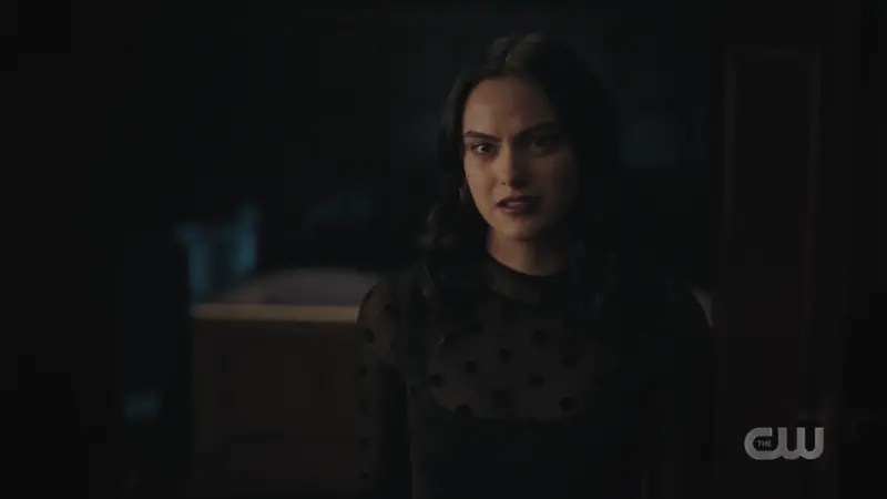 At La Bonne Nuit, Toni is at the bar when “Rosa” comes up to her. She asks Toni if she talked to her partner, and Toni tells her she’s on her way. In the meantime, the two of them head to the dance floor. Cheryl enters the club and joins them. Toni introduces Cheryl to “Rosa,” and Toni suggests they get out of there. Cheryl says they have somewhere special they’d like to bring her. At Maple Club, a bartender gives Veronica a message from Cheryl, and Veronica tells her to prepare the suite. “It’s time to snap a trap.” When Cheryl, Toni, and “Rosa” get to the suite, Veronica is waiting for them. She blows Hermosa’s cover, telling her it’s an ambush. Toni shoves a newspaper at Hermosa that has a picture of her and Hiram on the front, saying she marked her as soon as she saw her at La Bonne Nuit. As if Cheryl and Toni would just expose them to the Maple Club, their rum operation? Hermosa tells Veronica she has no idea what she’s talking about. Veronica says she bets Hiram put her up to this — do a little recon, scope out the competition. Hermosa tells Veronica that Hiram told her everything about his condition. Veronica can’t believe her father told Hermosa and not her, that he trusted Hermosa and not her.