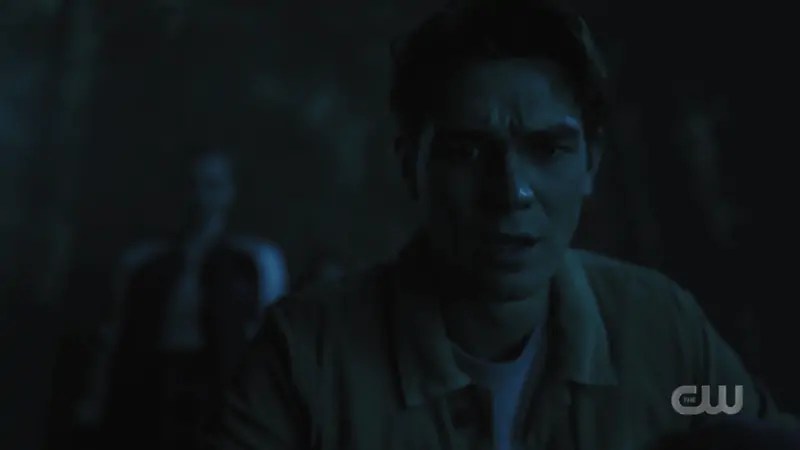 Veronica and Archie get back to the party and ask Joan and Jonathan if they’ve seen Betty and Jughead. They tell them Betty and Jughead went into the clearing behind the trees, and Veronica and Archie look for them. Bret and Donna stand beside Joan and Jonathan as they watch Veronica and Archie go into the woods. Veronica and Archie see Betty and run up to her, spotting Jughead on the ground and Betty standing over him. Archie kneels beside Jughead, whose head is bleeding, and checks for a pulse. There is none. He’s dead.