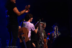 When I think about bands co-headlining a tour, I expect that one band will play their set and switch off with the second band playing their set. That’s been my experience in the past with co-headliners. Naturally, I fully expected to watch one band at a time perform a full set. I have never been so excited to be wrong. For much of the night, members from the non-performing band would join in and perform with the band on stage. Occasionally, both bands would be on stage together, even if one was just providing back-up and support.