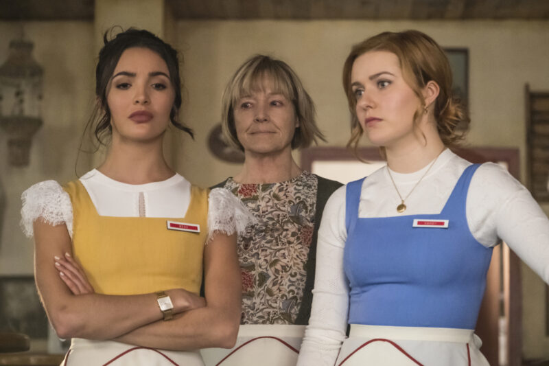 At The Claw, Nancy and Bess are setting up and also going over details of the case. Carson’s first hearing is happening in a few days, and Nancy wants to find evidence proving his innocence before then. We get a tracking shot through the kitchen as the unaware girls turn their backs to the camera, so the viewer knows a jump scare is coming. It’s delivered by Patrice, Lucy’s mother, who seems to have escaped from the institution she was living in (at least until Nancy and friends destroyed it). She’s living in a fantasy that she is still working at The Claw, which she did years earlier. Nancy and Bess allow her to pretend she’s at work as they try to get in touch with her son Josh.
