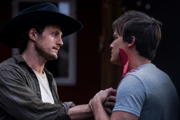 Noah’s funeral starts, with Michael Guerin arriving fashionably late, cowboy hat and all. Isobel (Lily Cowles) gets up to speak and delivers a beautiful and crushing eulogy which almost seems like it’s just as much for her late brother. Max is only considered missing at this point and the only ones that know the truth right now are Michael, Isobel, Rosa, and Liz.