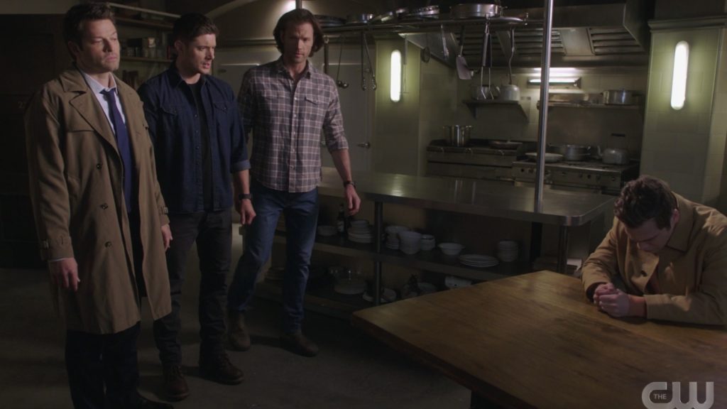The Garden has been the crossroads of divinity and humanity and no one has been there since the exile, until Jack. Dean asks Cas if Jack is okay, but Cas tells him he’s different. As the three of them go into the kitchen to talk to Jack, we find him sitting at the table crying because he didn’t understand it then. His mother died too, he apologizes, it was his fault. Cas tells Dean that Jack has his soul back, while Jack begs Dean and Sam for forgiveness. We see a tearful eyed Dean contemplative, but not answering Jack as we blackout…