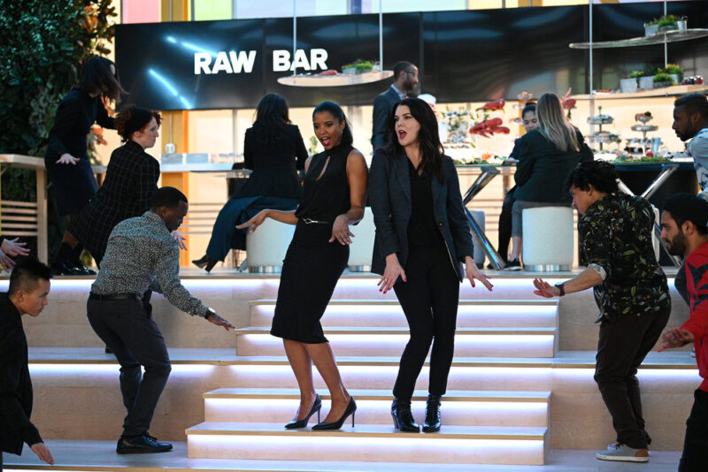 Joan grabs Zoey to tell her they are now in a bake off with the sixth floor over The Chirp. Joan retrieves her access card and heads to the sixth floor with their team and a few other fourth floor employees. The two face off over Max, who didn’t sign any transfer papers, but Ava is insistent he will be staying with the team that “values him.” Joan and Ava then break into an all out, epic face-off battle complete with back up dancers from each team of “The Boy is Mine.” (I might have applauded at the end, Lauren Graham and Renee Elise Goldsberry are amazing!) Max breaks up the argument, stating that his opinion in the matter should decide where he works. Max decides to stay on the sixth floor because “not one person fought to keep me” when he was trying to decide about leaving fourth floor. While it’s true of all of them, it’s clear he aims most of that statement at Zoey.