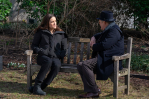 Liz arrives at a kitchen to meet Red as Dembe and Jalal are feeding the refugees. Dembe’s Imam’s disappearance is ongoing and Red feels he’s to blame. Liz meets with Esi and discovers that Reddington got to her and hid Ilya from her. Before Reddington warned her, she had Ilya’s apartment bugged and says there are archives that Koslov is obsessed with. Imam Asmal is seen and Katarina Rostova returns to say they have a lot to talk about.