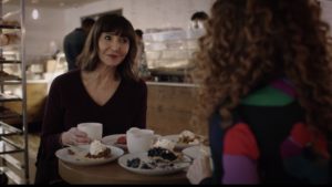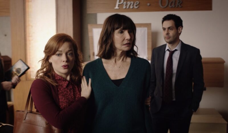 We flash-forward back to the funeral home with Zoey taking her mother’s advice to get her deposit back, and she sees the same woman at another funeral, this time approaching her, learning her name is Deb. She was very well taken care of when her husband died and now she is like a weed that won’t stop growing around the Tower of Tranquility, since she keeps recommending the place to all her friends who are in need. Zoey invites Deb out for the afternoon, and later for pie with her mother. Deb may be just the person to help Maggie if Zoey can’t.