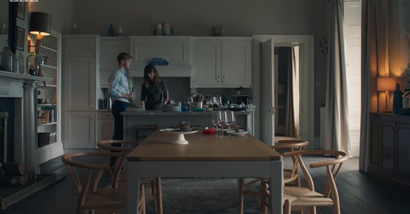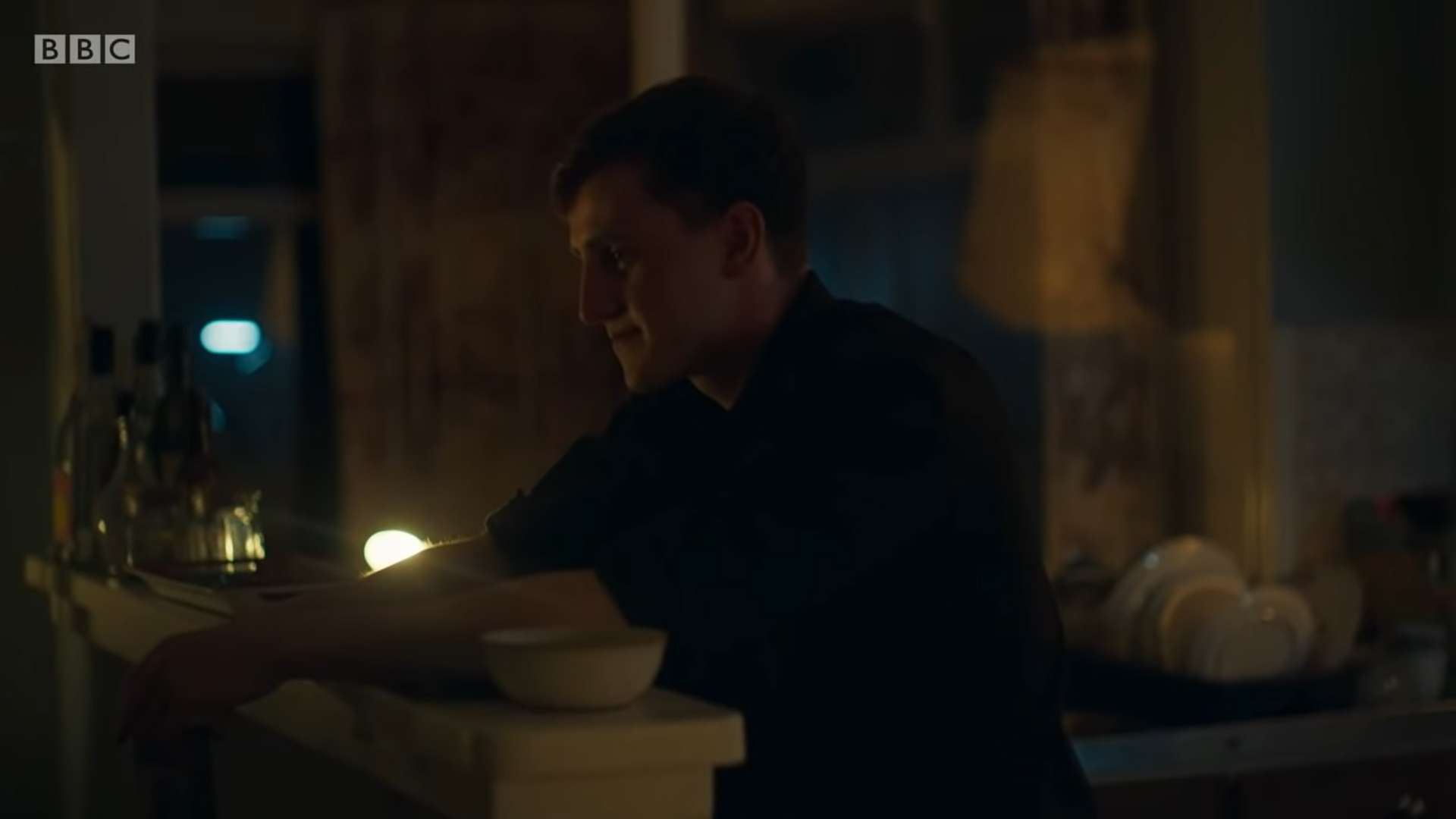 We start on Marianne, who is staring at shards of a broken glass in her sink. It’s not clear yet what’s happened, but her sadness radiates from her as she looks away from the mess. The title card flashes “SIX WEEKS EARLIER,” a much happier time. Marianne stands in front of the same sink, smiling at Connell. She asks him to stay, telling him she doesn’t have class until 3:00, but he says he has to get some things from his apartment and that Niall worries about him. Marianne laughs and says she likes Niall already. She wonders if Niall is his best friend, and Connell says that she is. This resolve to leave doesn’t last long as he kisses Marianne, and the two have sex again. Connell returns to his apartment, and Niall teases him, calling him “the ghost of Christmas Past” since he’s been spending so much time at Marianne’s place. He quips, “I heard someone coming in and thought the place was being robbed. You still live here, then?” Connell laughs and brushes him off, saying that as long as he’s still paying rent Niall can’t complain.