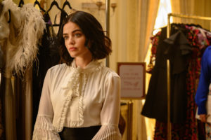 We pick up almost immediately from last week with Pepper in jail after her arrest. Luckily, Jorge and Josie come and bail out Miss Shirley Temple herself after raiding the bar. The one person missing, though, is Katy. She is at Lacy’s being assured by Mr. Cabot that personal shoppers will be offered through Caboture and all of Gloria’s girls are welcome to apply. It’s an insult, really, to all the girls, and to Francois who is dressing his final window in 30 years. Francois needs pieces for the window from Guy for Fashion Week, except Katy isn’t talking to him after she accused him of stealing designs from her and past apprentices.