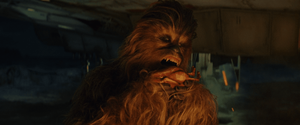 Chewie clearly didn’t get the memo that porgs were the next big thing, based on his unfortunate dinner choice.