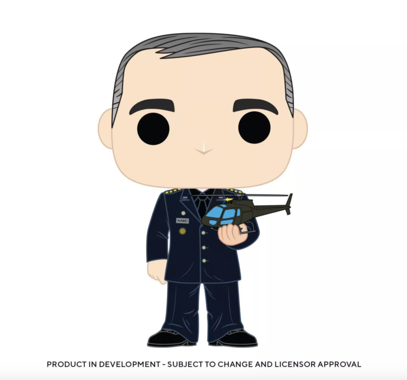 Fresh off its premiere on Netflix, the original comedy series Space Force already has Funko Pop!s in development. The first wave will include four figures: a version of General Mark R. Naird holding a helicopter and one with him holding a rocket, an F. Tony Scarapiducci figure, and one of Marcus the Chimpstronaut. The figures are currently slated to release January of 2021. You can pre-order them from Target here.