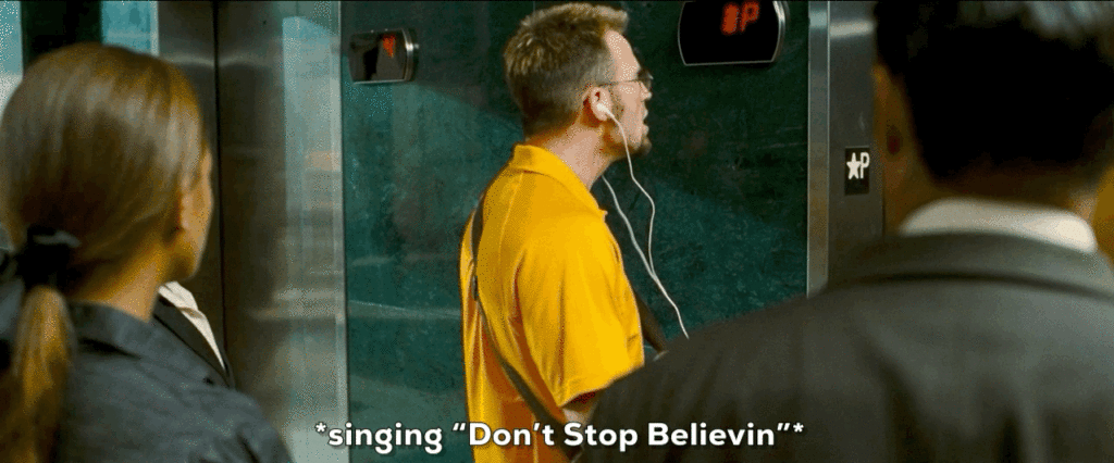 We’re topping off this list with Jake Jensen and his elevator scene. Two elevator scenes on one list … maybe it’s cheap, maybe it’s a coincidence. The Losers follows an eclectic group of special operatives who are betrayed in the middle of a mission and set out to get some good old fashioned revenge. Jensen is the hacker of the group and, on his way up to perform his very important task, he does a little bonus show to shake people off his tail. I won’t tell you if it worked or not, but I do recommend checking out this film. But I will say … “Don’t Stop Believin’.” Plus, Evans’ mom, Lisa, has said this character is closest to how Chris is in real life.