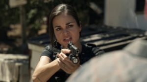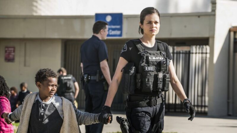 You learn a little more about Chris at the beginning of the second half of the season. Lieutenant Lynch approaches her about doing an interview. Chris declines, saying that LAPD has 70 other S.W.A.T. officers they can interview. Lynch finds Chris later, wanting to talk more about the interview. She tells her she thinks she’s being singled out because she’s a woman, and Chris asks her if she knows how hard it was to make S.W.A.T. She has to prove every day that she deserves to be there, saying she slips up one time and they won’t tell her it’s because she had a bad day, it’s because she’s a woman. Lynch tells Chris that maybe some girl will read her article and think that maybe she can do it too.