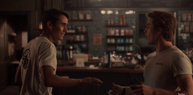 Another adorable coffee shop scene follows, Victor officially an employee. He and Benji are closing up, complaining about the music they’re forced to endure. Benji says he can change the music using Victor’s phone. As he’s looking through songs, he stumbles on “Baby Shark,” and Victor quickly says it’s because of his brother. Finally, Benji selects “Call Me Maybe.” Victor brings up a dance he used to do when he was younger, and the two attempt to recreate it. After they dance it out, Victor tells Benji about Mia. In turn, Benji says he’ll also be performing at the Battle with his band, as the lead singer. When Benji invites Victor to hang out backstage after the performance, Victor begins to panic a little and decides to change his plans with Mia. His next message to Simon mentions how he can’t focus on Mia tomorrow if he sees Benji in his “tight t-shirts and his dumb smile.”