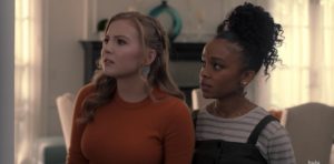 Lake and Mia are setting the table for dinner, Mia dreading the moment Veronica enters her house. When her father introduces the girls to Veronica, they have completely opposite reactions. Lake is quickly entranced by Veronica, but Mia isn’t so trusting and thinks it’s weird her dad chose an age-appropriate girlfriend. Veronica tries to be friendly with Mia, but Mia keeps her guard up, despite her dad’s obvious admiration for Veronica.