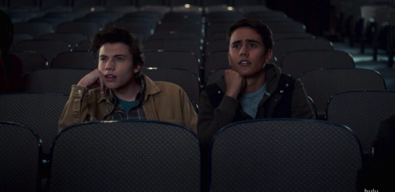 While the girls are in the hall, Victor and Felix are sitting in the theater listening to other students present monologues. In the middle of an especially confusing one, Victor receives the supposedly sexy message from Mia, but it confuses him as much as the monologues. He responds with the thumbs up emoji, leaving Mia frustrated the message didn’t work. Lake takes over, sending something meant to be more enticing. The boys read it, but Victor still doesn’t get the hint, as the message was mostly emojis. Felix, however, tells Victor that he could be “dancing the midnight Macarena,” the implication making Victor worried.