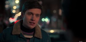 Victor stands outside Messy Boots getting some fresh air. Someone calls his name, and he turns to see Simon walking towards him (and yes, I did scream in excitement, thank you very much). Simon hugs him, telling Victor he felt bad for not being in New York, so he left the bachelor party. Victor isn’t so thrilled, though, venting his anger and feeling of betrayal to Simon. Simon tells him he did it because each of his friends could relate to parts of Victor’s story that Simon couldn’t. The entire time they were listening, helping, and cheering for him, even if Victor didn’t know. He asks why they would want to help him; they don’t know him. Simon says it’s because being who they are makes them family, and Victor is part of it. Unsure of how to respond, Victor makes a joke about how cold New York is, and Simon gives Victor his jacket, to keep.