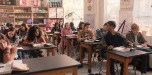 Felix, Lake, and Andrew are in class, Mia following shortly after, frustrated with Victor cancelling plans under the guise of a trip with his dad. Their teacher, Ms. Thomas, comes in, angry about her boyfriend (Omar) breaking up with her. Andrew says he made a mistake leaving her, and Mia texts him about flirting with anyone. This prompts a text chain between the group: Andrew responding to Mia, who gets a text from Lake that was meant for Felix, who feels left out and texts all three. The buzzing from their phones gets Ms. Thomas’ attention and she sentences them to Saturday detention.
